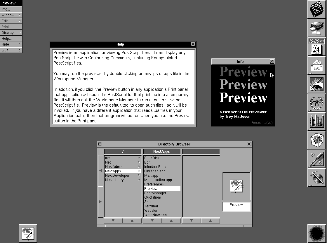 Preview.app shown in NeXTStep 1.0 courtesy of infinitemac.org